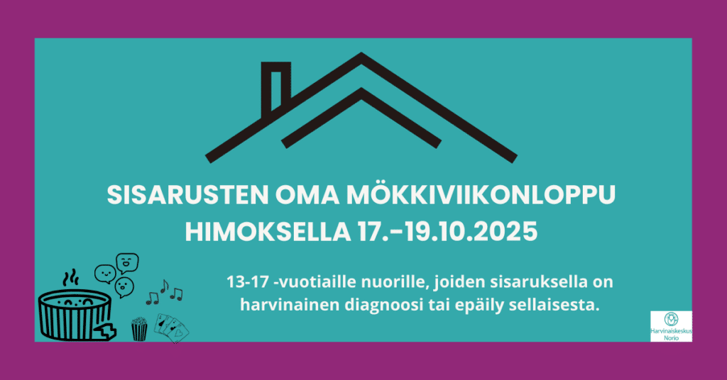 13–17-vuotiaille nuorille, joiden sisaruksella on jokin harvinainen diagnoosi tai tuntematon harvinaissairaus. Muu perhe ei pääse tällä kertaa mukaan.